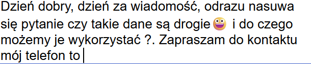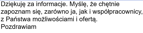 Uwzględniliśmy w komunikacji język urzędowy, spersonalizowaliśmy powód kontaktu, imię odbiorcy, nazwę urzędu / organizacji, miasto oraz przykłady wykorzystania danych.