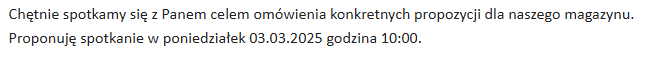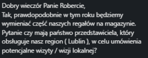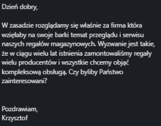 Daj znać, w czym mogę Ci pomóc. Udzielenie dodatkowych informacji (np. strona internetowa, nazwa firmy czy opis Twojego pomysłu na współpracę) usprawni naszą komunikację!